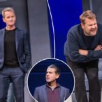 It’s a worthy subject, especially today. Bromance is complicated. It’s not all slap hugs and fist bumps. Among male buddies, there always lurk shades of frenemy, rival and bully. Of course, this comedy premiered years before the so-called manosphere, when Andrew Tate was growing his first pubes. It’s actually refreshing to see guys who are classy and well-spoken, perhaps petty and pompous but not toxic stereotypes. The characters arrive on Broadway through French and then English filters (Christopher Hampton translated), so they have a curious mix of Gallic chauvinism balanced by Brit insecurity. Corden does a fine job as the (unexplained) English friend, whinging deftly through a bravura mid-show monologue about the logistics of his impending wedding.