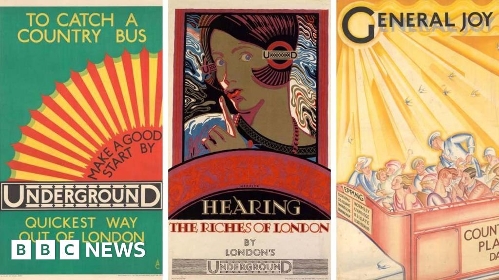 The posters were created in distinctive Art Deco style at the peak of the design movement and were put up at Tube stations a century ago to encourage people to travel on the network to explore the city.