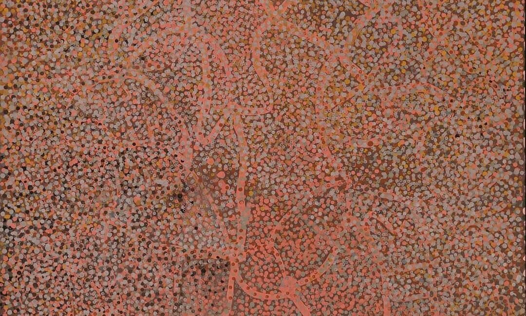 Straightening the Spears at Ilyingaungau (1990) by Turkey Tolson Tjupurrula (1942 – 2001), regarded as a work from the most influential series on the style of Pintupi painting; the late Johnny Warangkula Tjupurrula’s Water and Tucker (1972); and Bush Plum (2015) by Angelina Pwerle, now aged 86, are among the highest valued lots.