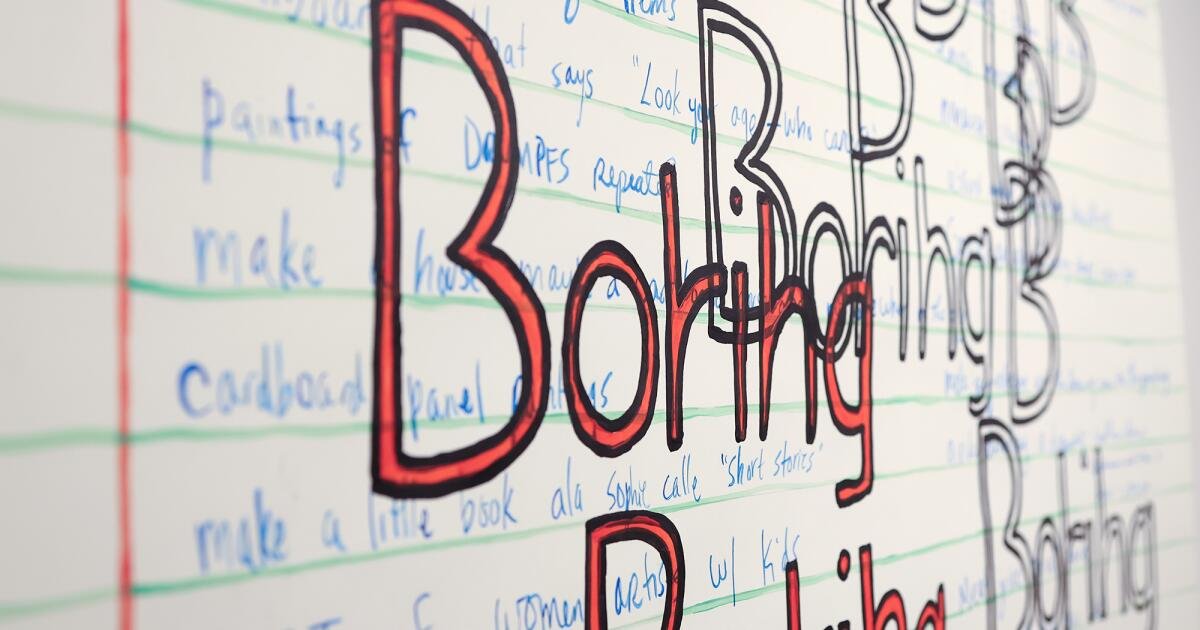 Molly Schulman’s “I Will Make Boring Art” is part of her Anec-notes project, part of the “Swing Shift” exhibition at the Irvine Fine Arts Center.