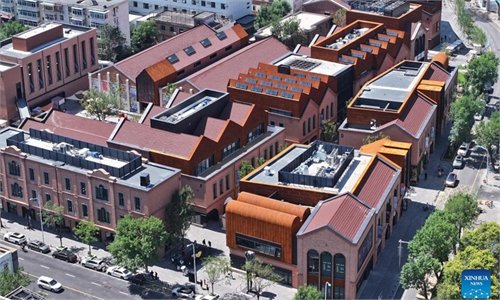 An aerial drone photo taken on July 13, 2025 shows the Tianjin Academy of Fine Arts Art Block in north China’s Tianjin. The art block, which opened to the public recently, was built with the support of Tianjin Academy of Fine Arts. It is Tianjin’s first urban renewal program which combines distinct four functions in one: urban block, community, scenic area, as well as campus. (Photo: Xinhua)